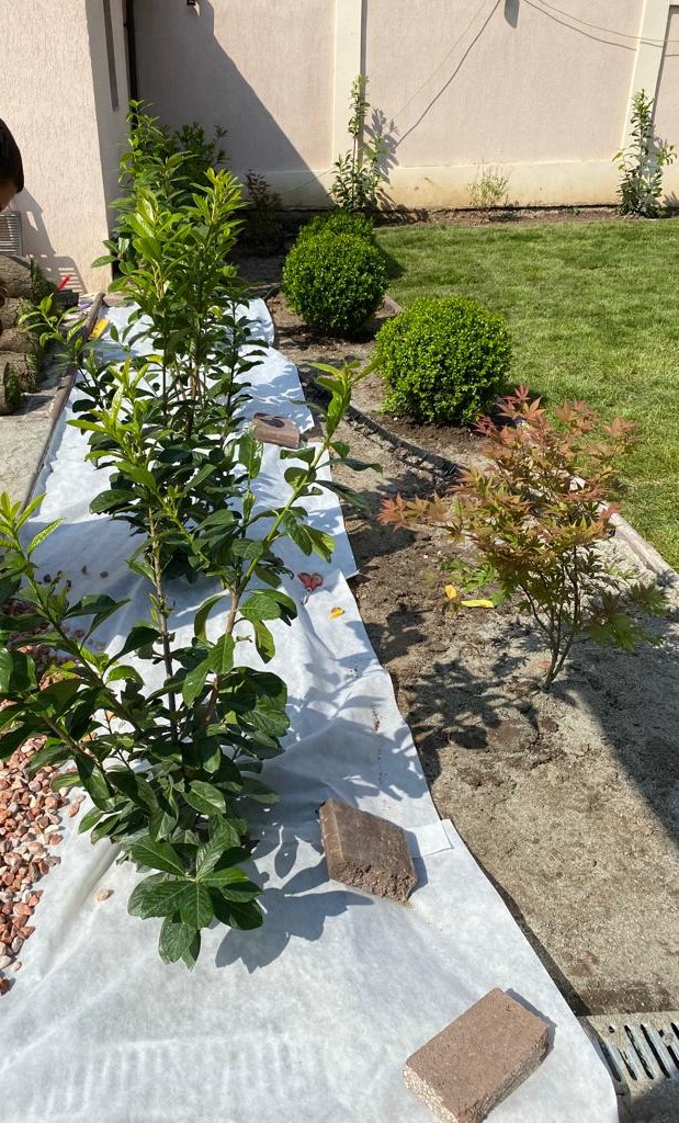 Folia antiburuieni a fost aplicată în zonele de plantare și sub pietrișul ornamental pentru a preveni creșterea necontrolată a buruienilor și pentru a reduce necesitatea întreținerii frecvente.