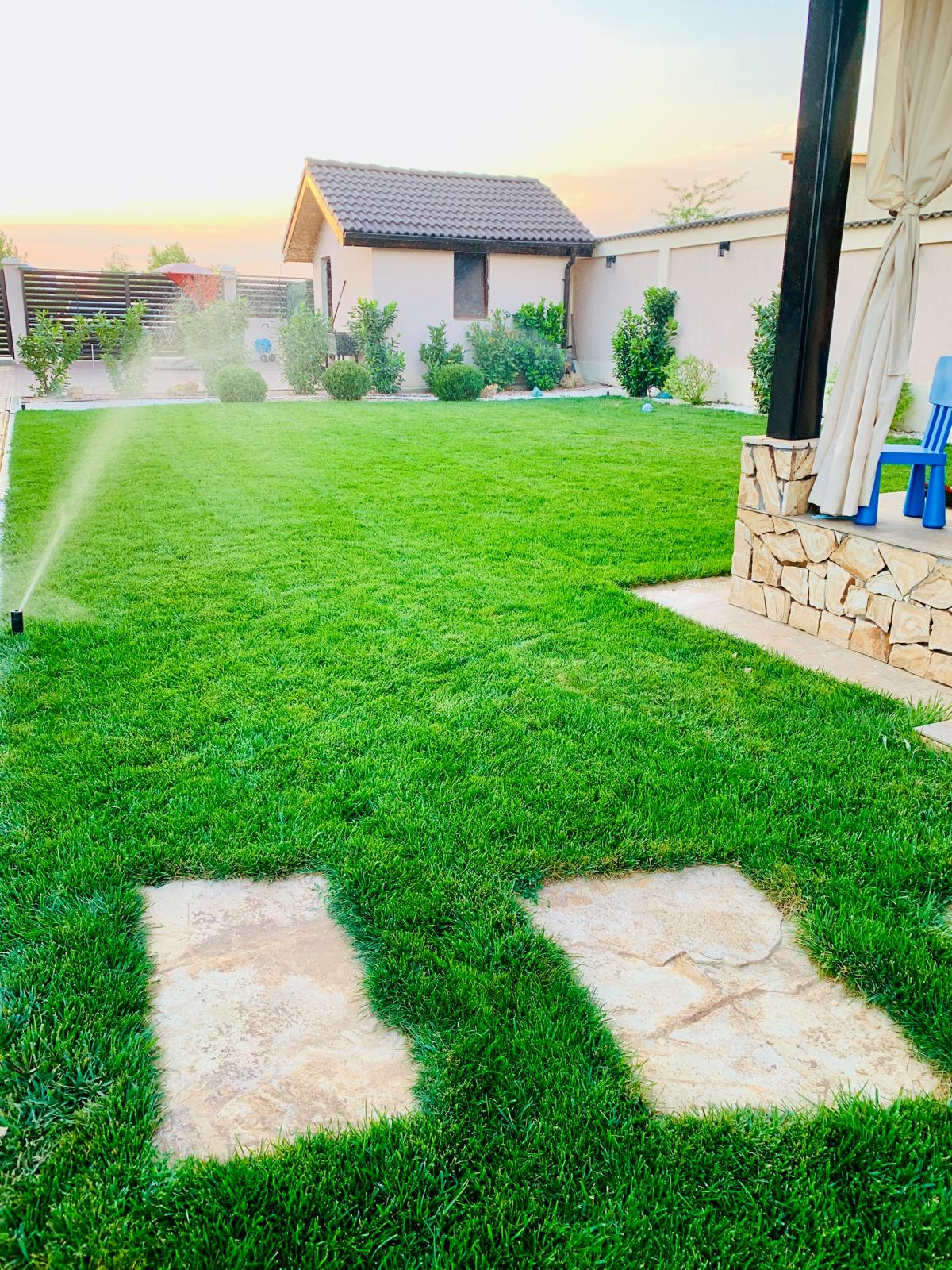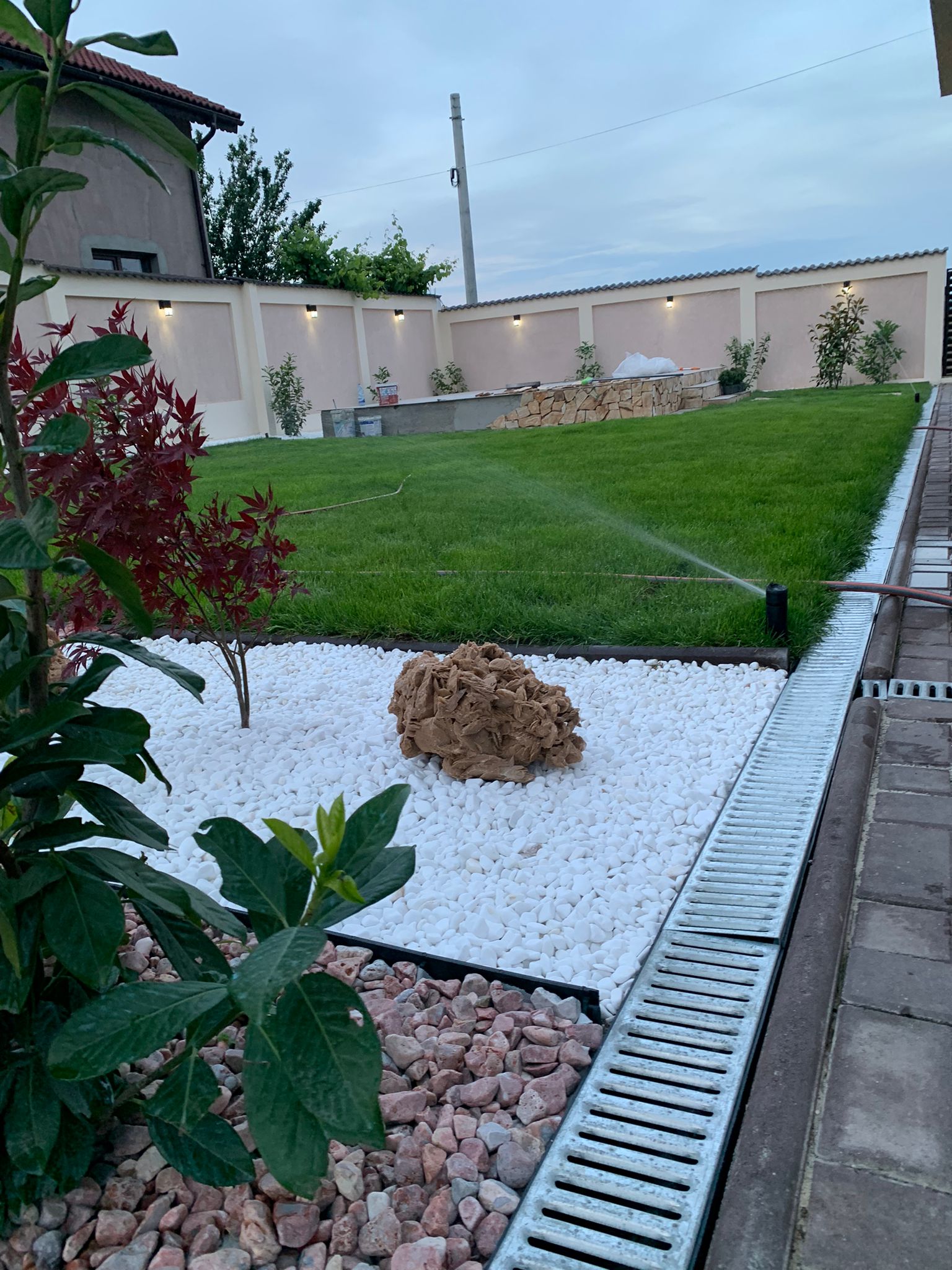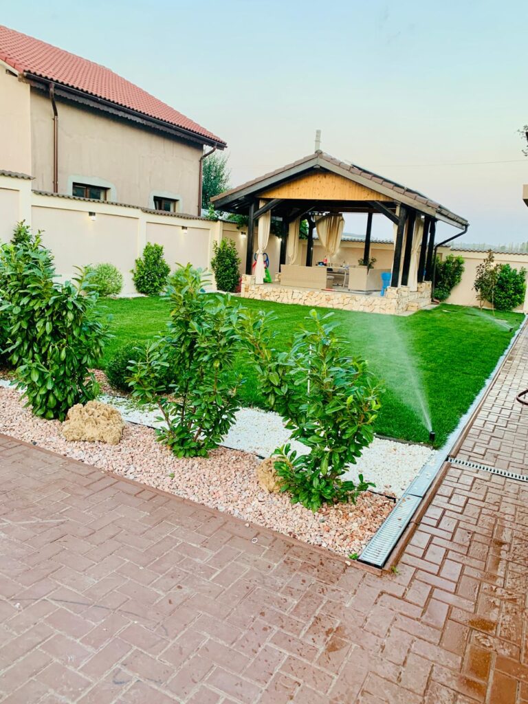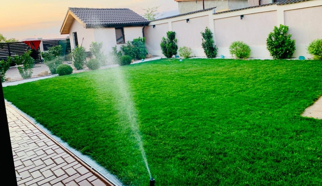 Sistemul de irigare automatizat a fost instalat pentru a asigura udarea uniformă a grădinii. Acest sistem include aspersoare reglabile și linii de irigare, asigurând o distribuție eficientă a apei.